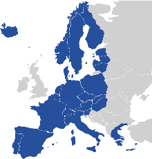 Alemania, Austria, Bélgica, Bulgaria, Chipre, República Checa, Dinamarca, Eslovaquia, Eslovenia, España, Estonia, Finlandia, Francia, Grecia, Holanda, Hungría, Islandia, Italia, Letonia, Lituania, Luxemburgo, Malta, Noruega, Polonia, Portugal, Rumania y Suecia.
